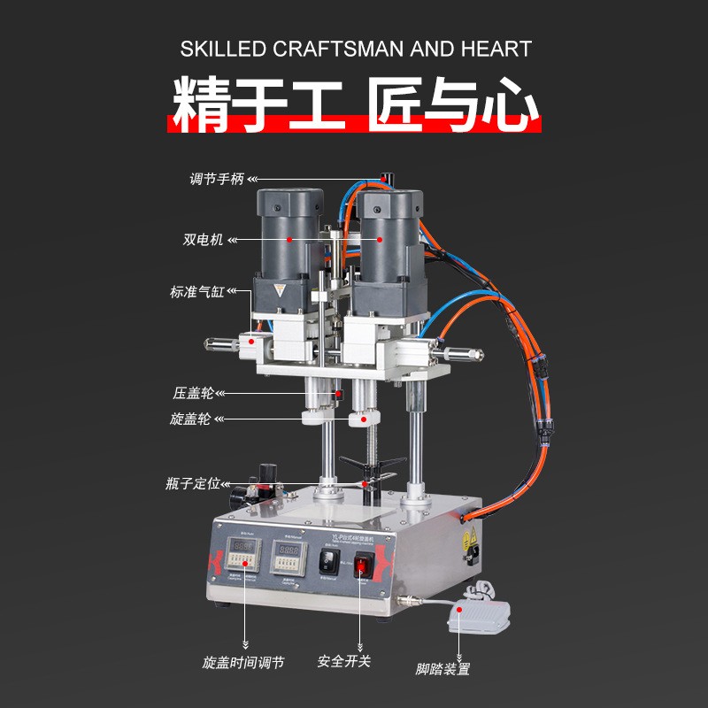 半自動瓶子旋蓋機是一種用于將瓶蓋(塑料蓋、金屬蓋、鋁蓋等)旋緊到瓶口的包裝設(shè)備。它結(jié)合了人工輔助上蓋和自動旋蓋功能,適用于中小型生產(chǎn)線、實驗室或小批量生產(chǎn)場景。